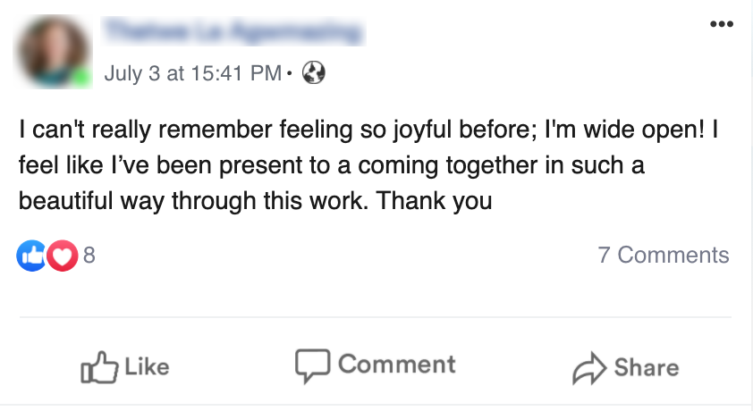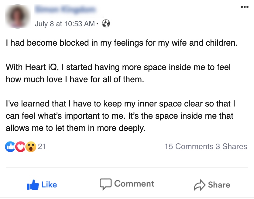 "You learn practical skills to live a more joyful life. Heart iQ is heart-centered, heart-led and heart-opening. You will laugh. You will cry. But most of all you will deepen in an experience of what it is to truly feel loved and to love others authentically from your innermost heart."